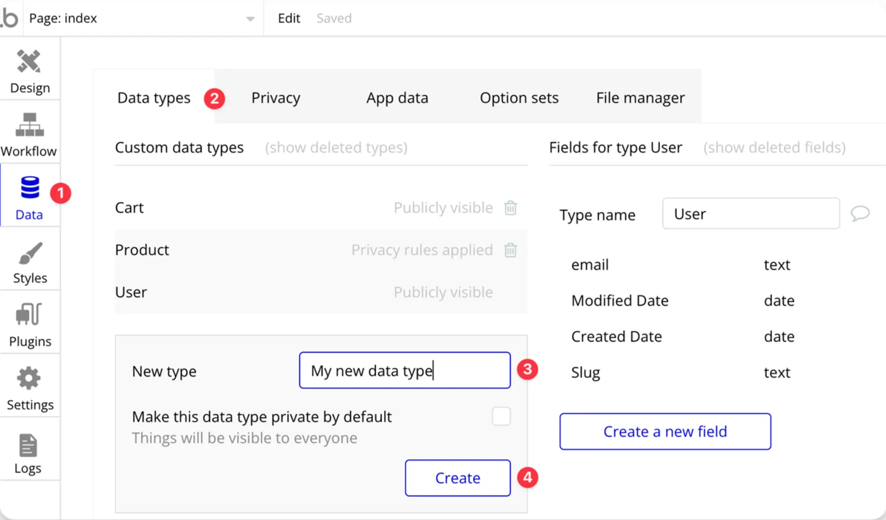 버블이 제공하는 강력한 내장 데이터 베이스 기능은 복잡한 데이터 모델을 손쉽게 설정하고 관리할 수 있게 하는 특장점이 있습니다 !