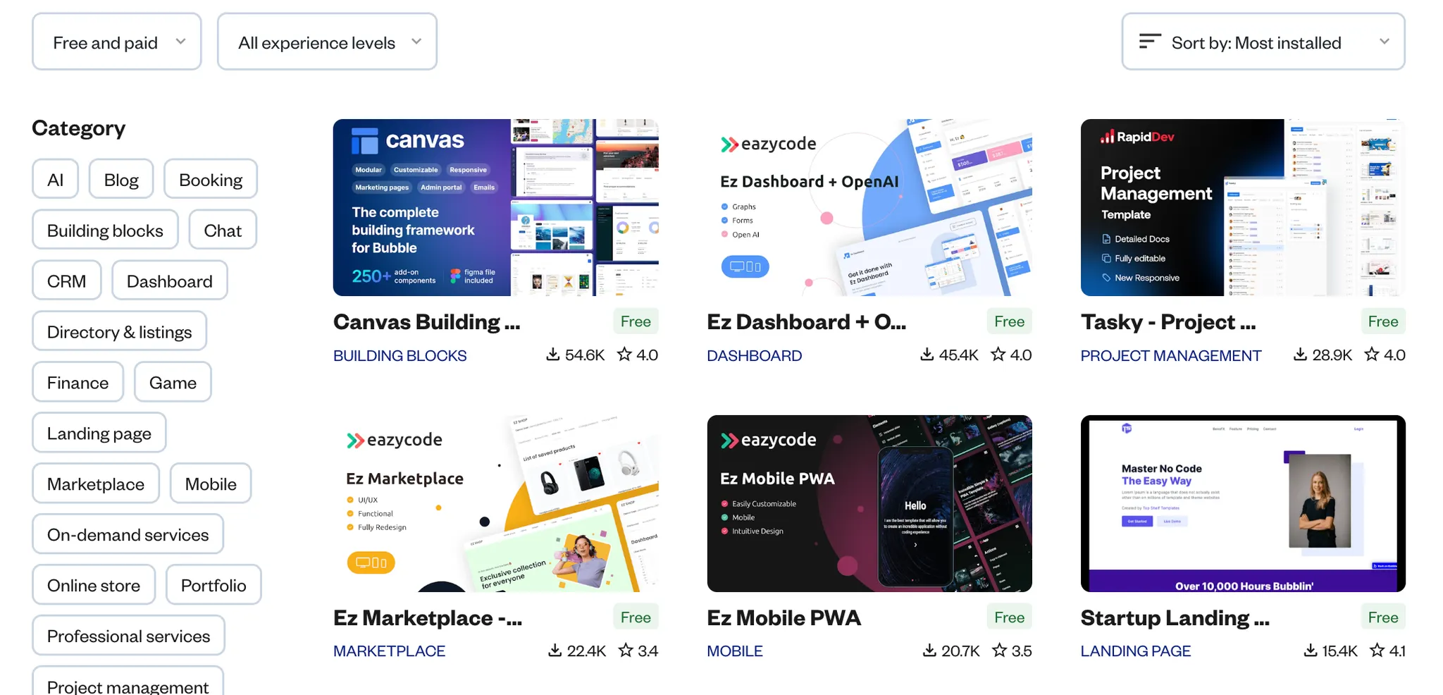 노코드 개발 툴 버블에 대한 기초적인 지식, 템플릿 활용