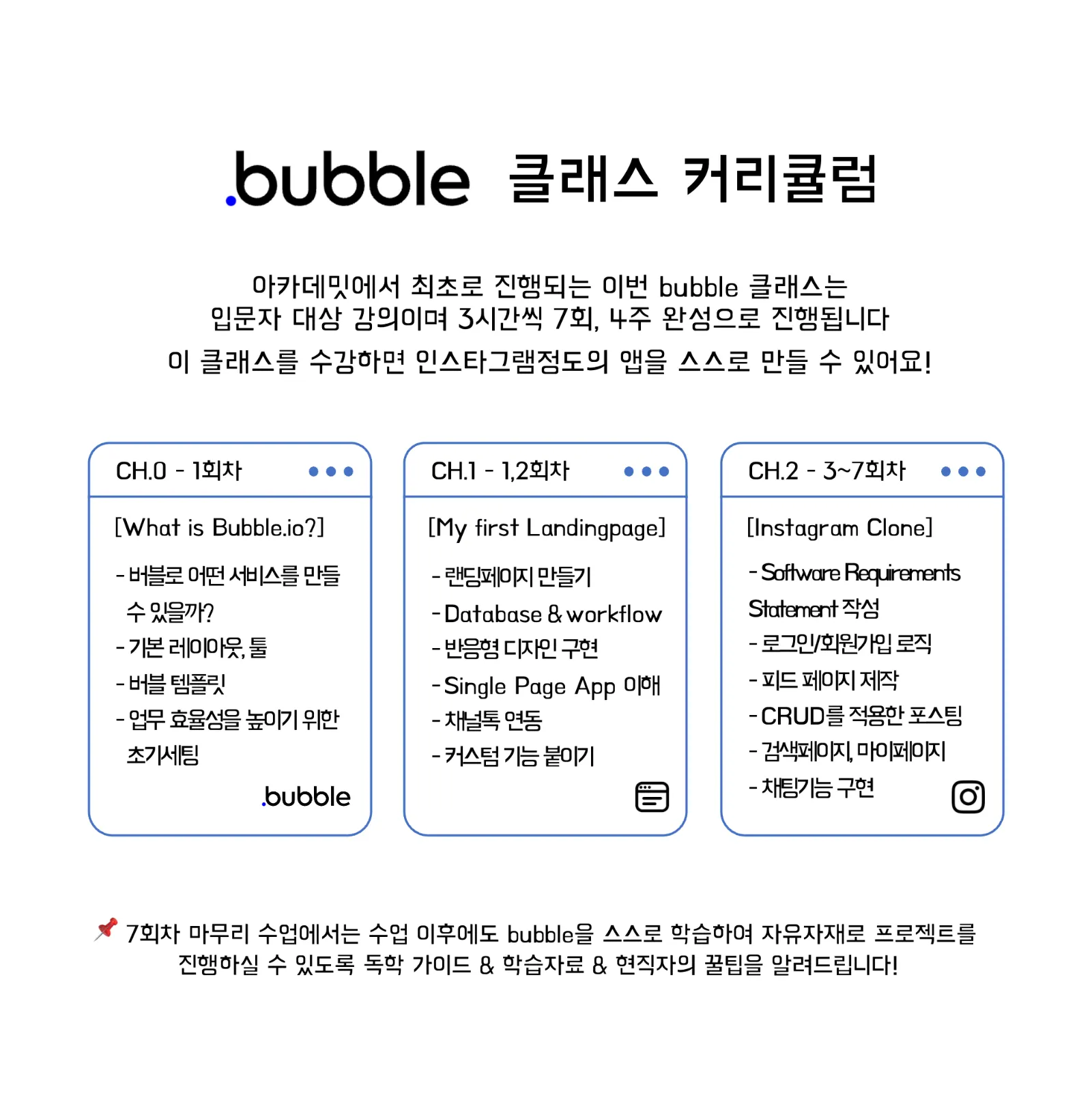 이번 클래스는 버블을 처음 접하는 초보자들을 위한 맞춤형 프로그램입니다.